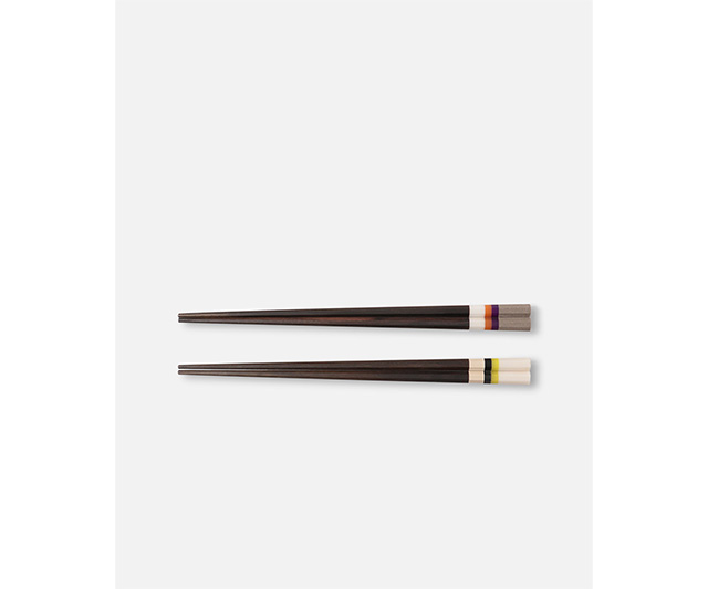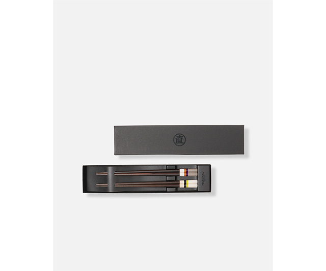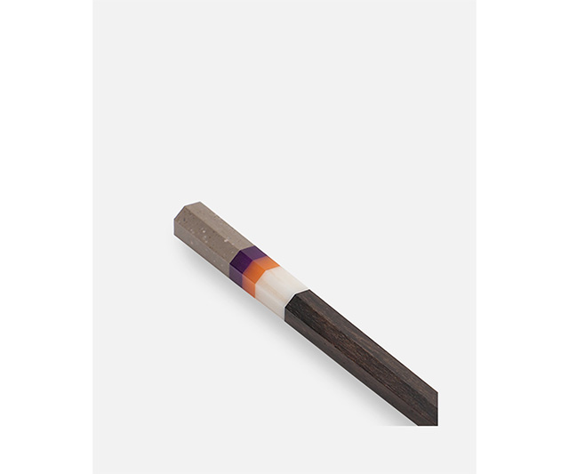 黒檀と人工大理石を組み合わせた<マルナオ>の象徴ともいえる上八角箸のセット。オレンジの生産が盛んなバレンシアでは、街を歩いていると爽やかなオレンジの香りがしてきます。そんなバレンシアを想起させるような鮮やかなオレンジと落ち着いた紫のコントラストが魅力的。マンチェスターのシンボルである蜂をイメージした、鮮やかなイエローをポイントに、全体にシックに仕上げています。