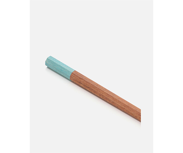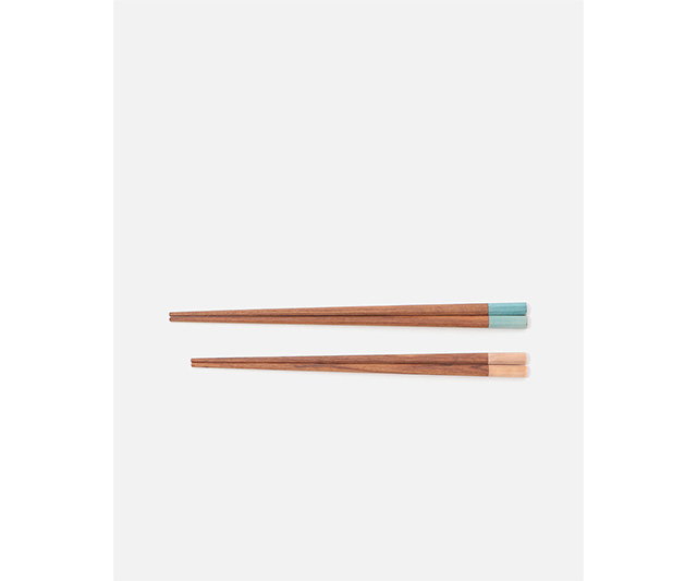 含浸技術を使って樹脂を染み込ませた楓材を天辺につけ、お箸の色分けを可能にしました。紫檀との接合部分には中に芯を入れ重さのバランスも良く、子供から大人まで使いやすいベストセラーのお箸です。