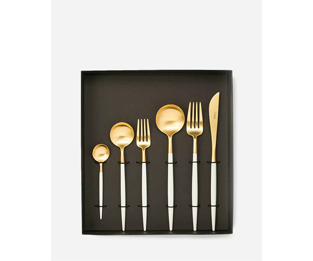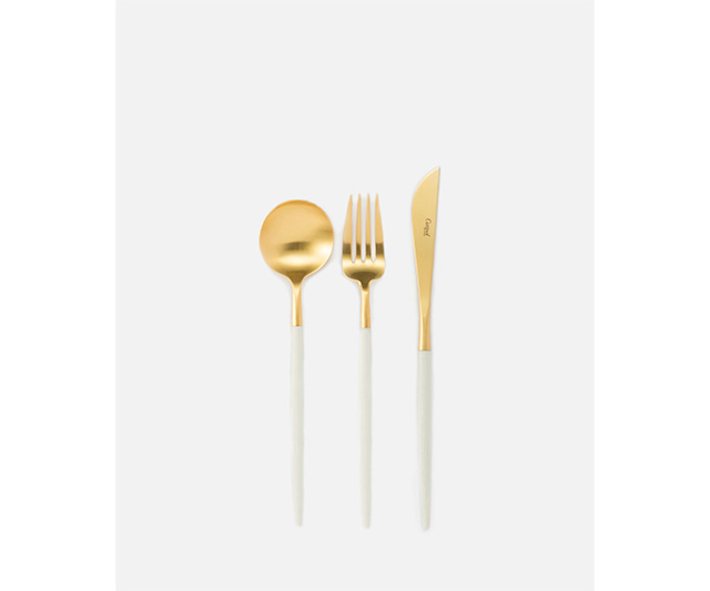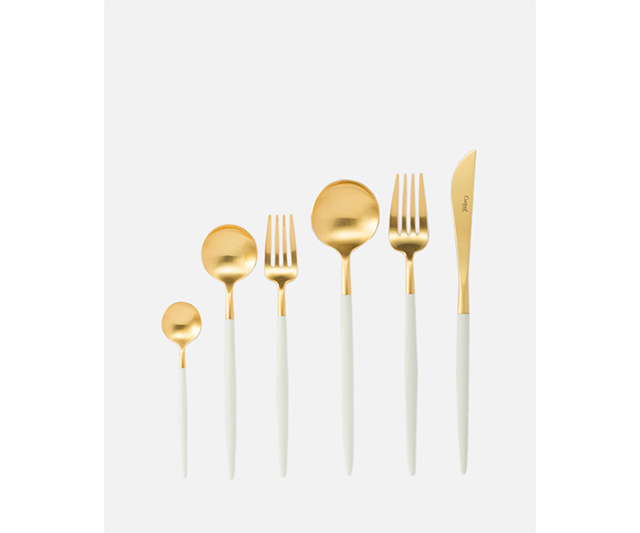 洋・和食器ともに合わせやすい繊細なフォルムで、樹脂とステンレスの組み合わせが美しいシリーズ「ゴア」。シーンや用途によって使い分けできる6本をセットにしました。細く華奢な柄と、ほど良い重みが持ちやすさの秘訣。持ち手には樹脂を使用し、乾きやすく軽やかな使い心地に仕上げています。カラーは、上品で優雅なホワイトゴールド。