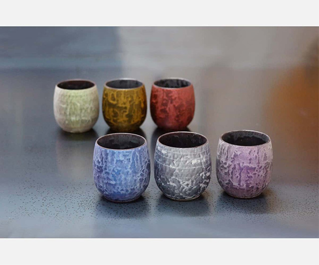 モダンで妖艶な質感と色彩の「麟・Linシリーズ」。見る角度によって色味が変わり、パールの光が美しい色を発し、非日常の空間と癒しをもたらします。目線で変わる光と影のコントラストを、ぜひ手に取って楽しんでいただきたいカップです。ウィスキーや焼酎などにピッタリの形です。