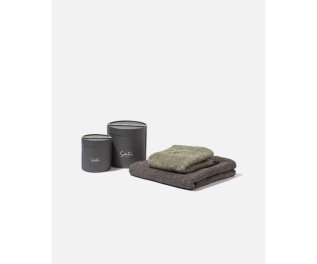 フィール バスタオル・フェイスタオルセット ギフトボックス付き チャコール&モス