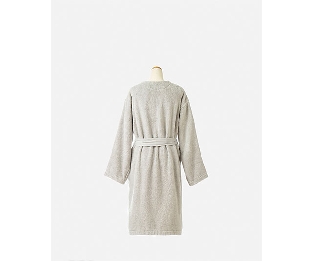 <育てるタオル>のプレミアムラインMARQUE(マルク)シリーズのリラックスウェアです。着ている間は、その場所が自分だけのラウンジになることを願って、ラウンジローブと名付けられました。一般の糸よりも空気の層が多い綿糸スポンジーコットン100を採用し、ふっくらした肌触りに仕上げています。驚きの軽さと柔らかさはもちろん、通気性が良く、季節を問わず快適に使えます。また、縫い目を減らし、ゆったりとしたシルエットにしているため、ストレスフリーな着心地を楽しめます。洗濯時に便利な、特大サイズの専用ネット付きです。サイズは、女性用の着丈105cmと男性用の着丈120cmから選べます。