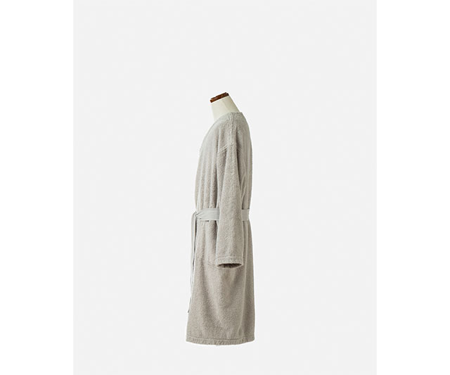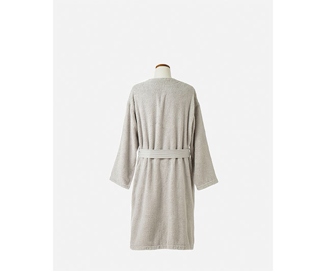 <育てるタオル>のプレミアムラインMARQUE(マルク)シリーズのリラックスウェアです。着ている間は、その場所が自分だけのラウンジになることを願って、ラウンジローブと名付けられました。一般の糸よりも空気の層が多い綿糸スポンジーコットン100を採用し、ふっくらした肌触りに仕上げています。驚きの軽さと柔らかさはもちろん、通気性が良く、季節を問わず快適に使えます。また、縫い目を減らし、ゆったりとしたシルエットにしているため、ストレスフリーな着心地を楽しめます。洗濯時に便利な、特大サイズの専用ネット付きです。サイズは、女性用の着丈105cmと男性用の着丈120cmから選べます。
