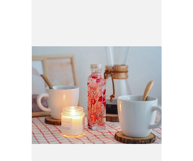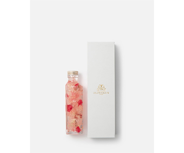 本物の花や植物の一瞬の命を特許技術で閉じ込めた FLOWERiUM(フラワリウム)のハート型ボトル。底面がハートをかたどったボトルに、フローリストが1つ1つ手作業でピンクのお花を詰め込みました。水の中でキラキラと揺れるピンクの花びらは、ハートに躍動感をプラスします。スリムなハート型のボトルは、さりげなく心を込めて贈るのにぴったりです。