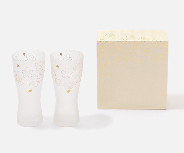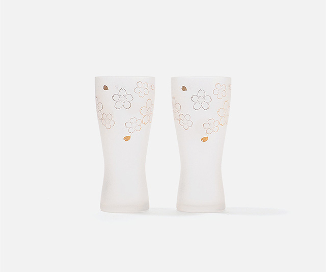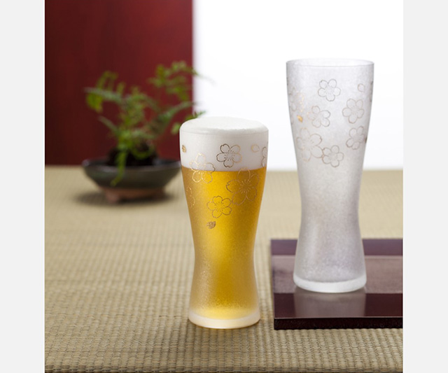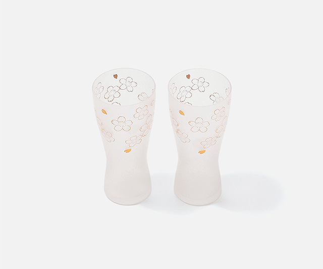 水晶の如くキラキラと煌めくペアグラス「泡づくりプレミアム桜Mペアセット」日本を象徴する花「桜」を表面に金彩で施しています。品よく涼しげな風合いで、口当りの良い口部薄肉仕上げ。冷えたビールを注ぐと柔らかでクリーミーな泡の出来上がりです。