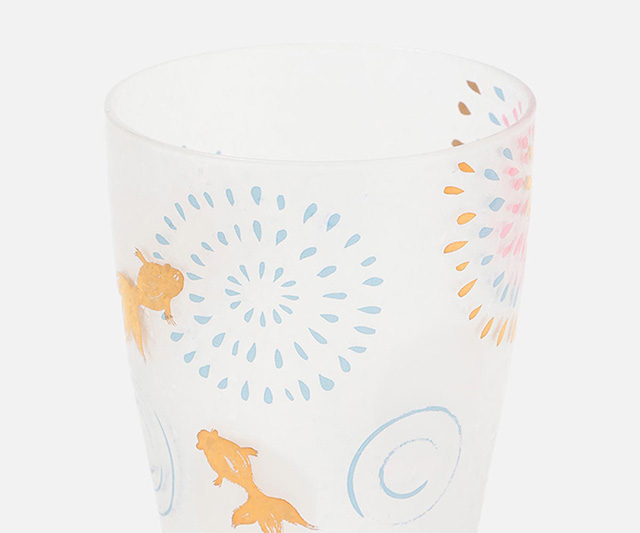 プレミアムニッポンテイスト。日本古来の文化や意匠を現代の技術・手法でグラスウエアに映しました。まるで水晶の如くキラキラと煌めくグラス表面に金彩紋様が踊るモダンで涼しげな風合いの趣ある一品です。
